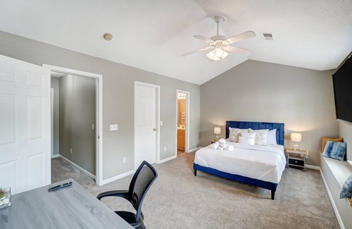 This is the perfect place for business travelers, couples, or families looking to explore Charlotte! Your professionally cleaned, spacious retreat features a cozy living room and 2 master bedrooms (upstairs) that provide a peaceful haven for any traveler. The living room boasts a contemporary/modern theme and has a Smart TV with board games that the whole family can enjoy. The kitchen also provides everything you need to prepare and cook meals in your home away from home and FREE coffee for those needing an extra boost in the morning!