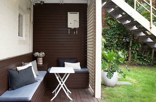 Sophisticated decor and clever use of space combine with cozy charm in this beautiful harborside hideaway. Set over just one floor, this petite apartment is quietly graceful in its design. Connected to the outdoors via floor-to-ceiling windows, you'll be tempted into the shared garden and beyond. The decking delivers welcome shade with an architectural flare, enticing you to enjoy a lazy cocktail al fresco. Sophisticated yet homely, this calming home offers relaxation for couples as well as families, boasting two spacious bedrooms (a king and a twin). The main living space is equally serene, with a calming modern seating area inviting you to curl up after a long day exploring the city.