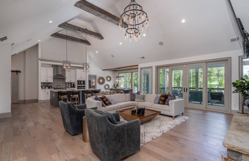 A walk-out terrace puts guests within steps of the private gated pool. If the interior of Harmony Bay won't cure what's ailing you, the pool surely will. During cooler months, a pool heater is available for use for an extra fee. For more outdoor adventure, enjoy an adult beverage at the firepit while the kids compete at the ropes course. At water's edge, guests will find a well-maintained private dock with slips for both boat and jetski. It's also a spot ideal for anglers of all ages and levels. In summer months, there's no shortage of watercraft passing by, and it makes for spectacular sunset views. A short ride down the channel offers boat-up dining at Georgia Butts BBQ and rentals through Oconee Wild Watersports and Young Harris Watersports. For more options, visit nearby shops along Highway 44, including locally owned restaurants such as Sweet Kneads, Lake Oconee Bistro, 5B BBQ and Brews, and Café 44.