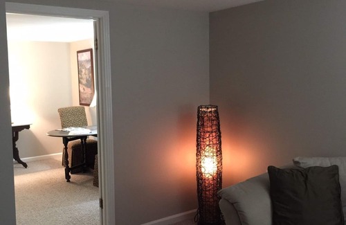 Apartment in a private home with separate entrance. Furnished, Queen size bed, Full kitchen ,washer/dryer included. Wireless Wifi included. In a great neighborhood in town on two acres.
