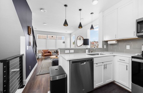 This brand-new 2-bedroom, 2-bathroom corner unit townhome is the perfect base to explore Downtown Traverse City and nearby Lake Michigan by foot. It comfortably sleeps up to 6 and boasts a private rooftop deck with city and water views. High-speed internet, a dedicated workspace, and modern amenities are included to make your stay convenient and memorable!