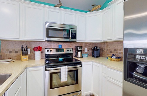 Book your stay at this stylish home with an open concept with a coastal feel throughout, grand ceilings and boat parking. Relax in the living area on the modern couch with plush pillows and two accent chairs while watching your favorite movie on the large TV with cable and Wi-Fi. Try out your culinary skills in the large kitchen with spacious countertops, Keurig, pantry, stainless steel appliances and stocked with dishes, pots, pans and utensils. Savor your meals at the adjacent dining area with seating for six. There is additional seating for 4 at the bar. For your convenience, there is a full-size washer and dryer in the hallway area. The master bedroom has a Queen size bed, nightstand, bench at the foot of the bed, closet, chest and wall-mounted TV. Freshen up in the ensuite bathroom with double vanities and tile walk-in shower. Perfect for the kids, the bunk room has 2- Twin over Full bunk beds, a gaming couch, wall-mounted TV and closet. The guest room consists of a Queen bed, nightstand, chest, closet and wall-mounted TV. Both rooms share a hall bathroom with a vanity and tub/shower. Bonus features such as a large backyard, covered patio, balcony, room for boat parking and only 0.9 miles to the beach make for an impressive vacation. Come and play, book today.