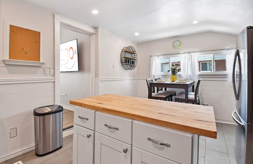 We are proud to offer Heber's Cutie on the Corner! - A lovingly refurbished and tastefully decorated bungalow just off Heber's Historic Main Street. At one time a local church building, this newly restored bungalow has open rooms with high ceilings and charm in every corner. The interior is complete with a contemporary, fully-equipped kitchen, two large bedrooms, a full bathroom and a large fully landscaped backyard with Arctic Spa Hot Tub, Outdoor Dining, and firepit with Adirondack chairs. Only steps from downtown Heber and a short drive to Deer Valley, Park City, Midway and all that the Wasatch Back has to offer!