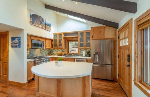 Located a quick walk from Lake Tahoe’s shores, this beautiful home tastefully blends modern decor with rustic, mountain style. Upon entry, guests will find an open floor plan with high vaulted ceilings, skylights, and stunning views in every corner. Outside, you and your crew can spend your free time relaxing on the sprawling deck- perfect for lounging under the pines or grilling out. Interested in dining out or getting your swim on? GarWoods, Watermans Landing, and Patton Beach are located just across the street. With its spacious interiors and prime location in the heart of North Shore, Henderson is every guest’s dream.
