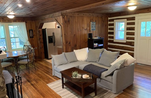 "Only 2 miles from downtown Main Street, live music, breweries great food AND only 11 miles to Dupont State Forest with its beautiful waterfalls, trails and mountain biking. When you are ready to relax and unwind, enjoy the full privacy of a rustic log cabin with modern amenities. Relax in the evening with our fire pit or inside with a movie. The kitchen is fully stocked with all the necessities and more. Enjoy dining on our back deck or inside our intimate home.