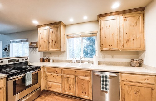 This 3-bedroom + loft cabin offers peaceful seclusion with the perfect mix of comfort and adventure. The open floor plan features a fully equipped kitchen, a warm fireplace, and forest views from the living and dining areas. Step onto the private patio to enjoy fresh mountain air, towering pines, and occasional wildlife sightings. Whether you’re sipping coffee under the trees or unwinding after a hike, this is your place to relax and recharge.