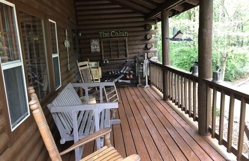 Large wrap around deck on main log house with additional screened in porch to enjoy the warm Arkansas nights.