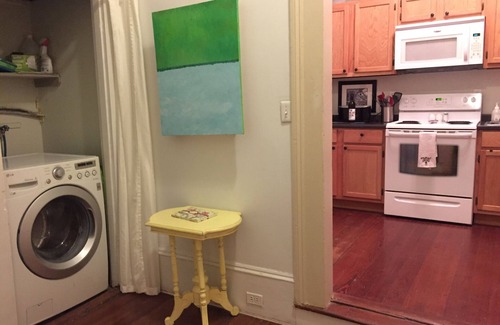 Stay in a true New Orleans home, circa1852 …hardwood floors, high ceilings, original fireplace mantle (non-working), ceiling fans, and a cozy brick patio (perfect for sipping cocktails, coffee, or iced tea). This is a fully furnished, well appointed, 700 sq ft, 1 bedroom/ 1 bath apartment located within a historic home. Plenty of closet space for any length of stay. The kitchen is fully furnished with a full-size refrigerator, oven/stove, microwave, dishwasher. There are dishes, utensils, pots/pans, coffeemaker - everything you will need to make your stay comfortable. The living room and bedroom both have a flat screen TVs with Roku, AT&TV Now, and Amazon Prime. Wireless internet. Linens are provided.