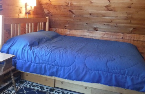 A charming renovated summer cottage, originally built in 1905 on Partridge Lake. Private lake-front swimming area including canoe and kayak. Owner's boat shown in photo not included. Boat slip available as an extra. Partridge Lake is a 100 acre 2-loon lake a short drive from I93 and downtown Littleton. While there are 9 sleeping places, the cottage has three sleeping areas with accommodations for up to four adults and five children. Perfect for one large or two small families. 8 adults will not be comfortable here due to the configuration of beds and sleeping areas.