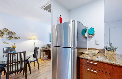 Find wooden flooring, contemporary decor, and comfortable furnishings throughout the spacious and open living area. Watch your favorite shows on the 42in flat-screen TV. The well-appointed and modern kitchen has everything you'll need to prepare your favorite recipes. Enjoy granite countertops and a full suite of stainless steel appliances -- including a dishwasher, microwave, and electric range. Recap the evening with a beverage on your balcony, or, a morning coffee in the morning before more amazing moments.