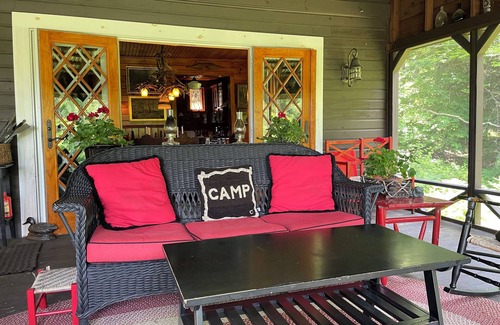 Converted carriage house of one of the handful of remaining historical, awarding winning communtiy for architectural preservation and one of the 'Great Camps' of the American Gilded Age. On magnificent Upper Saranac Lake. Classic Adirondack lodge feel furnished with antiques.
