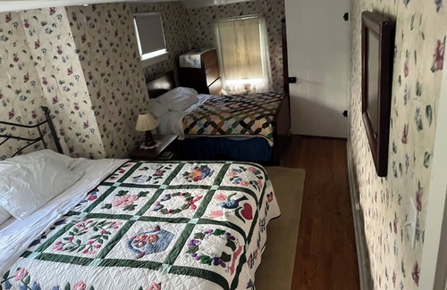 Historic North Ridge Farmhouse features beautiful antiques throughout entire home. Enjoy full use of kitchen, dining room, living room as well as 3 bedrooms on 2nd floor with full bath. Sofa bed in living room provides sleeping arrangements for 7. Enjoy long walks on this 100 acre property or relax on the spacious front porch.