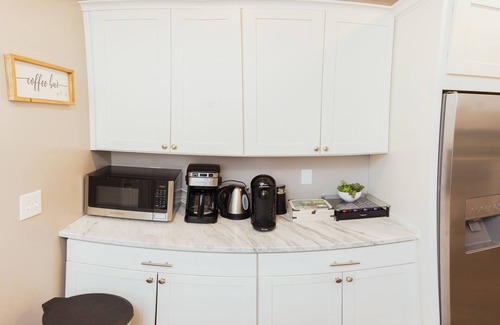Step inside and you’ll immediately feel the warmth and character of this beautifully restored home. Enjoy a cup of coffee from our fully stocked coffee bar, complete with both coffee and Nespresso pods. Our kitchen has everything you need to whip up a home-cooked meal, and with grocery stores just a mile away, you won't have to venture far to stock up on supplies.