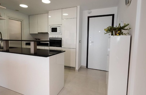 The "Infiniti-Holiday" flat is located on the fifth floor and consists of two bedrooms, both of which offer beautiful views of the Mediterranean Sea, as well as a living room. One area has a huge terrace with a set of rattan furniture, and the other has a table and chairs for outdoor dining. The property has heating and air conditioning. There are built-in wardrobes in each room. Both bathrooms are equipped with underfloor heating and a shower. There is free WiFi! Those travelling by car can park their car in the private underground car park.