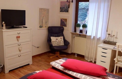 The holiday apartment has 1 bedroom (1 x twin bed), a living room/bedroom, cable TV, internet, stereo system, kitchen-living room, bathroom with shower and toilet. There is a beautiful garden at your disposal. Of course, garden furniture is also available. The cozy and modernly furnished holiday apartment invites you to relax and feel good. It is an ideal starting point for interesting excursions to Weikersheim, Schwäbisch Hall, Würzburg, Langenburg, Rothenburg, etc. You also have a variety of options to make your vacation varied, e.g.: fishing at Lake Hachtel, hiking and cycling as well as other leisure activities in the surrounding area.