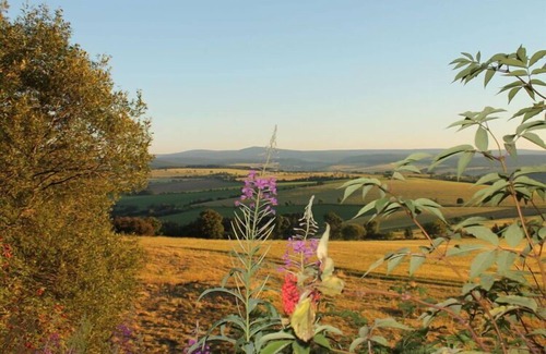 Our country house with our five lovingly furnished holiday apartments is located on a quiet one-way street, approx. 700m from the historic city center, approx. 15 minutes on foot. The holiday apartment has a separate bedroom with box spring bed, open living area with dining area, kitchen with dishwasher, coffee machine, toaster, kettle, 4-plate ceramic hob, large sofa bed 2.00 m x 1.65 with topper, flat screen TV, radio with CD, new bathroom Washing area, shower and toilet, WiFi, We offer a parking space at the house and there is another free one about 80m away in the Frohnauer Hammer museum parking lot.