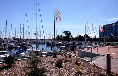 The 2-room flat MEER & MEHR is located on the 5th floor of the Ostseeresidenz, lifts are available. You have direct access to the harbour and the beach through the rear door in the hall.
