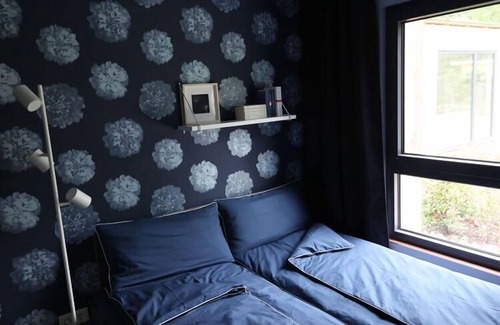 Within the Biosphere Reserve Schorfheide-Chorin, the accommodation is located on the edge of a holiday village with a GDR history, right on the Grimnitzsee. Various owners rent their bungalows there. The bathing area at about 250 m away is ideal for small children because the lake is flat there for a long time. A handcart is available to you so that you can easily take everything necessary for the bathing day. You have to bring large towels and blankets for excursions to the bathing lakes. A terrace (23 sqm) and garden with meadow, partly deliberately left to nature, mostly offer sun in the morning. There is a small herbal corner that you can use. The large apartment on the ground floor with six beds in three bedrooms is freshly renovated, high -quality, modern and furnished with a lot of love. Living and dining area have large windows with a view and access to the garden.