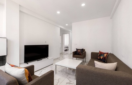 The holiday apartment "Maria Zambrano Málaga" is located in Málaga and offers a comfortable setting for your getaway. This property consists of a living room, a well-equipped kitchen, 2 bedrooms, and 1 bathroom, and can accommodate 4 people. Available amenities include high-speed Wi-Fi (suitable for video calls), a smart TV with streaming services, air conditioning in the living room, and a washing machine.