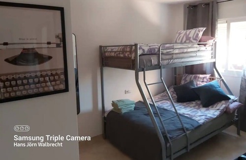 The holiday apartment "Meeresbrisse" is located in Gea y Truyols (Murcia) and boasts a tranquil mountain view. This 66 m² property consists of a living room, a well-equipped kitchen, 2 bedrooms, and 2 bathrooms, and can accommodate 4 people. Among the on-site amenities include high-speed Wi-Fi (suitable for video calls), a dedicated workspace for home office, a TV, air conditioning, and a washing machine. A shared gym and a pool table are also available on the premises.