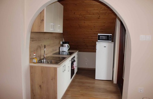The holiday apartment is located in a detached single-family home built in 1989, was renovated in 2021 and is furnished in a modern style. Also due to its quiet and sunny location the domicile is popular. Available for your exclusive use: sunbathing lawn, parasol, sun lounger, children's playground, swing, sandpit, climbing frame, garden shower, barbecue facilities, pavilion, garden furniture, Hollywood swing, campfire site and courtyard. Children's slideLocationBalatonkeresztúr. The holiday apartement is located on a 1000 sqm enclosed garden plot with meadow, flowers, shrubs and trees, bordered by a fence and a hedce. The landlord lives permanently in the house, but uses a seperate entrance. Access is via a side road (asphalted). Parking (for 3 cars) is available on the property. Specialair conditioning, central heating (gas).Facilities: baby cot, high chair, internet access (WLAN), iron, ironing board, washing machine and dryer. TV reception takes place via satellite. Channel also in German. The accommodation has hypoallergenic pillows.For your safety, the accommodation is equipped with CO2 detector, smoke detector and fire extinguisher. PoolAll pools are available for exclusive use. Outdoor pool (usable from mid May to mid October, 2 m x 4 m, depth 0,8 m). paddling pool. Dogsnot allowed. DistancesShopping 400 m, restaurant 400 m. Balatonmáriafürdő: railway station, discotheque, pharmacy each 500 m. bank 600 m. cinema in Hévíz 20 km. thermal bath, indoor swimming pool, sauna, doctor each 13 km in Marcali. Children's playground 50 m. In summer: Balaton 700 m in Balatonmáriafürdő (nudist beach 700 m in Balatonmáriafürdő). Balatonmáriafürdő: horse riding 1000 m, tennis 400 m and fishing, water sports, boat rental, boat launch each 700 m. dog beach in Fonyód 18 km. DivisionHoliday apartment, 1 floor, 4 rooms (including 3 bedrooms), 90 sqm, in total 8 beds (including 2 additional beds). RoomThe entrance to your holiday apartment is located in the attic and leads over an internal staircase directly into the vestibule. Living room with sitting area, TV, dining area (8 seats) and access to the balcony. All windows and external doors are secured with fly screens. 2 bedrooms each with 2 single beds and 1 additional bed on sleeping chair. All windows and external doors are secured with fly screens. Bedroom with 2 single beds. All windows and external doors are secured with fly screens. Kitchenette in the kitchen-diner with electric stove (ceramic hob, 4 plates), oven, dishwasher, fridge (icebox), microwave, coffee machine, toaster, electric kettle and access to the balcony. All windows and external doors are secured with fly screens. Bathroom with shower, 1 washbasin, hairdryer and opens from the bedroom. Bathroom with shower, 1 washbasin and külön előtérből nyílik. Bathroom with shower, 1 washbasin, hairdryer and külön előtérből nyílik. Separate toilet with WC and opens from the bedroom. Separate toilet with shower, 1 washbasin, WC, hairdryer and külön előtérből nyílik. Separate toilet with shower, WC, hairdryer and külön előtérből nyílik. Terms of lease and pricesIncluded in the priceOutdoor pool, babycot, internet access, baby cot, dish towels, air conditioning, electricity, water, final cleaning, bed linen, hand towels, pool, bathing towels, sunloungers, high chair - please order at booking, Wireless Internet access. Side costs-Costs on the spot:/Obligatory:local tax by local tariff.On request:washing machine 4 € per stage of washing programme based on usage.Deposit:EUR 150,-/object