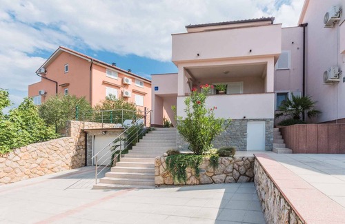 The holiday apartment is located in a semi-detached house built in 2016 and is furnished in a modern, functional and typical country style. The property is located at the end of a cul-de-sac road. Also due to the view over the sea from the property and its quiet, sunny and secluded location the domicile is popular. Available for shared use: garden shower and barbecue facilities.LocationKlimno, district Klimno. The holiday apartement is located on a 200 sqm enclosed plot with flowers and shrubs, bordered by a fence. The landlord lives only occasionally in the house. In the same house the holiday apartment: KRKSIL258, KRKSIL259 and KRKSIL260 are (each for 4 persons). Access is via a side road (rubble or gravel, length 50 m). Parking (for 3 cars) is available on the property. Specialair conditioning. TV reception takes place via satellite. LeisureIn the complex: boat rental. Dogsnot allowed. DistancesShopping 350 m, restaurant 350 m, town center 350 m. doctor in Dobrinj 6 km. pharmacy, bank each 12 km in Malinska. airport in Omišalj 15 km. Children's playground 500 m. In summer: Adriatic Sea 200 m in Klimno (beach 250 m in Klimno featuring gravel, stones, rocks and bathing plateaus). Klimno: fishing 300 m and water sports, boat rental each 500 m. tennis, horse riding each 16 km in Njivice. diving in Šilo 6 km. DivisionHoliday apartment, 1 floor, 2 rooms (including 1 bedroom), 43 sqm, in total 4 beds (including 2 additional beds). RoomThe entrance to your holiday apartment is located on the 1st floor