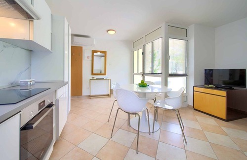 The holiday apartment is located in a single-family home and is furnished in a modern style. Available for use: barbecue facilities and garden furniture.LocationKrk. The holiday apartement is located on a garden plot. The landlord lives permanently in the house. Parking is available on the property. Specialair conditioning. TV reception takes place via satellite. Dogsnot allowed. DistancesShopping 70 m, restaurant 200 m, town center 70 m. pharmacy, bank each 200 m in Krk. airport in Omišalj 30 km. railway station in Rijeka 60 km. Airport 23 km away. In summer: Adriatic Sea 100 m in Krk (beach 200 m in Krk featuring gravel and bathing plateaus). tennis in Krk 150 m. DivisionHoliday apartment, 1 floor, 2 rooms (including 1 bedroom), 45 sqm, in total 2 beds. RoomThe entrance to your holiday apartment is located on the ground floor. Bedroom with 1 double bed. Living/bedroom with 1 additional bed on couch/sofa and TV. Cooking nook in the living & bedroom with dining area, electric stove, dishwasher and coffee machine. Bathroom with shower and WC. Terms of lease and pricesIncluded in the priceair conditioning, parking place, electricity, water, final cleaning, bed linen. Side costs-Additionally(Payable when booking)/additonal fee for short-term stays (less than 4 nights) obligatory 30% per stay.Costs on the spot:/Obligatory:registration fee 4 € per person per stay. local tax by local tariff.Deposit:No deposit.