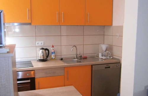 The holiday apartment is located in an apartment house and is furnished in a typical country style. The property is located on the outskirts. Also due to the view over the sea from the property and its quiet and sunny location the domicile is popular. Available for your exclusive use: terrace and garden furniture.LocationOmišalj. The holiday apartement is located on a 100 sqm enclosed garden plot with shrubs and trees. The landlord lives permanently in the house, but uses a seperate entrance. In the same house are KRK OMI 032 (5 persons) and KRK OMI 033 (5 persons) and on the same property 1 bungalow KRK OMI 030 (2 persons). Access is via a path (asphalted). Parking is available on the property. Specialair conditioning.Facilities: internet access (WLAN). TV reception takes place via satellite. Dogsnot allowed. DistancesShopping 120 m, restaurant 900 m, town center 3 km. indoor swimming pool in Njivice 8 km. Omišalj: doctor, pharmacy, bank each 3 km. airport 4 km. railway station in Rijeka 25 km. Pick-up by the house owner from Krk / Rijeka airport or from the train station in Rijeka is free of charge. In summer: Adriatic sea 20 m in Omišalj (beach 20 m in Omišalj featuring stones, rocks and bathing plateaus). mini golf, horse riding each 8 km in Njivice. fishing, boat launch each 20 m in Omišalj. DivisionHoliday apartment, 1 floor, 2 rooms (including 1 bedroom), 60 sqm, in total 5 beds (including 3 additional beds). RoomThe entrance to your holiday apartment is located on the ground floor. Bedroom with 1 double bed. Living/bedroom with 3 additional beds on couch/sofa, sitting area, TV, dining area and access to the terrace (20 sqm, covered, garden furniture). Cooking nook in the living & bedroom with electric stove (4 plates), oven, fridge, coffee machine and electric kettle. Bathroom with bathtub, 1 washbasin, WC, bidet and window. Terms of lease and pricesIncluded in the priceinternet access, electricity, gas, water, Bed linen (weekly change), Wireless Internet access. Side costs-Additionally(Payable when booking)/overcrowding (without bed) on request 10 € per person per day. local tax.Costs on the spot:/Obligatory:final cleaning 50 € per object per stay.On request:air conditioning 10 € per object per day.Deposit:EUR 100,-/object