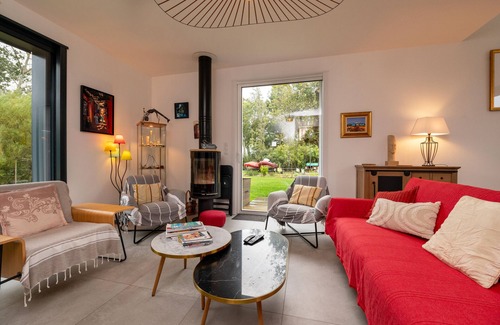 The holiday home 'Grande Maison Bord De Mer' is located in Sarzeau and is perfect for an unforgettable holiday with your loved ones. The 170 m² property consists of a living room, a fully-equipped kitchen, 4 bedrooms and 2 bathrooms (one with a bathtub, the other with a shower) as well as 2 additional independent toilets. This property can accommodate 8 people. Additional amenities include Wi-Fi, a TV, a DVD player a washing machine, a dryer, a wood-burning stove as well as children's books and toys. A baby cot and a high chair are also available.