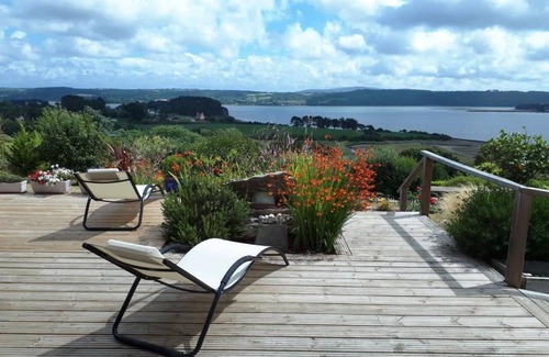 Are you looking for a peaceful and relaxing place by the sea? We welcome you all year round in an independent house located on a 1700 m² plot, enclosed, with flowers and fruit trees. The view is exceptional over the Brest harbor, the Crozon peninsula, and Ménez-Hom. At the border of North and South Finistère, this paradise is ideally located for visiting the Breton coast, from Pointe du Raz to Pointe Saint-Mathieu.