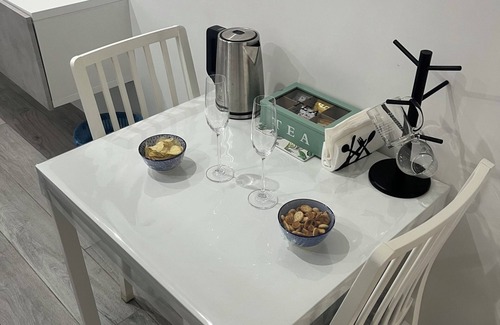 We offer you a coffee machine with pods and a kettle with various types of tea completely free of charge.