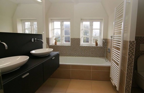 Short distances, most beautiful beaches, comfortable beds, highest standards. Also: suitable for allergy sufferers and tall people (extra door height 213.5 cm) Detached Frisian house typical of Uthland under thatch on 2 levels with approx. 115 m² of living space on a spacious garden plot with beautiful lawns. There are two spacious wooden terraces, each 18 m², and a parking space on the property. On the ground floor there is the hallway, the cloakroom, a shower room with toilet, the living and dining room as well as the open kitchen from Cramer with a cooking island and Gutmann island hood (reddot design award winner 2011). The living/dining area is spacious and covers more than 45 m².
