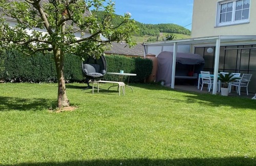 4* holiday home for 2 - 7 people for single use. Your holiday home extends over 2 floors, is flooded with light and furnished in a Mediterranean style with 2 double rooms, 1 single room with terrace, bathroom with underfloor heating, guest WC, eat-in kitchen with underfloor heating and lounge with sofa bed. Separate entrance is a matter of course. There is also a small private garden to relax in and a large communal garden. A car parking space and motorbike garage are available. Bed linen is included in the rental price. A travel cot and high chair can be provided for younger guests on request. This service is free of charge. Please book in advance. Also available: SAT-TV, DVD player, coffee machine, microwave, dishwasher, washing machine, kettle, hairdryer, garden furniture and much more. Pets on request. Comprehensive information about the holiday region and possible activities is available for you in the holiday home. Brief description Miscellaneous : Non-smoking house Brief description 1Number of kitchens : 1Other rooms : large eat-in kitchen Living room 1Other living room equipment : Upholstered seating area with table + separate sofa bed for the 6th and 7th person, satellite TV, DVD player, wardrobe, games collection Kitchen 1Other kitchen equipment : fully equipped eat-in kitchen with microwave, washing machine, coffee machine, kettle and much more. Surroundings Hire facilities : Bicycle hire Sports facilities in the surrounding area : Fishing, football pitch, golf course, canoeing, paragliding, cycle tours, riding centre / riding facilities, rowing, tennis, water skiing Surroundings 1Excursions : Cultural or shopping facilities in Trier, Wittlich, Bernkastel as well as Luxembourg, Idar-Oberstein, five-lake view Local description : The village, situated on the Moselle loop, is known for its outstanding wines and hiking trails with incomparable views over the Moselle valley. In the village there is a bakery, EDEKA market, butcher, hairdresser, ATMs, several restaurants, petrol station, charging station for electric cars, garden and outdoor facilities Garden equipment : Garden furniture available Services Services Services (may be subject to a charge) : Bread roll service