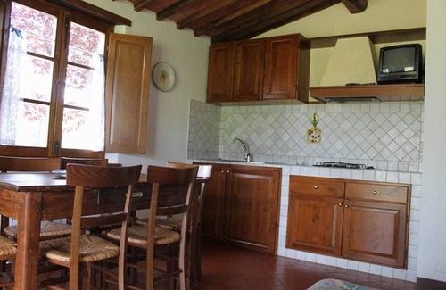 The apartments are furnished in typical Tuscan style with terracotta tile floors, beamed ceilings and fitted kitchens. A park stretches between each apartment, including a beautiful swimming pool (11x8 m), a solarium (10x10 m) and a beautiful lawn shaded by mulberry trees, pines, oaks and cypresses. Next to the pool and the park is a charming restaurant (open on weekends and decorated for wine-olive oil costs as well as cooking classes) with stone walls, a large fireplace and wooden beams. The place is also ideal for weddings, celebrations and parties.