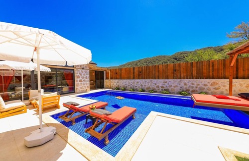 Our 5-person villa, which was completed in Kalkan Sarıbelen in May 2022, will provide you with pleasure with its modern architectural structure that provides an ideal holiday opportunity for nuclear families and honeymoon couples, and its features such as a private swimming pool, children's playground, sauna, jacuzzi, barbecue and relaxation area. It promises to make you have a holiday.