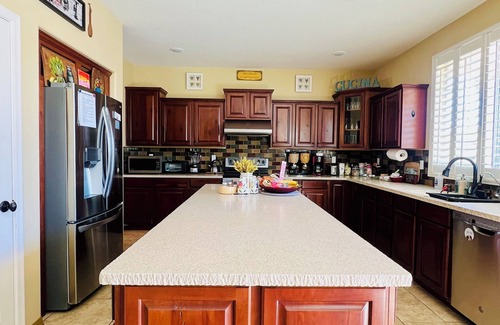 Peaceful neighborhood, and close to grocery restaurants and 12mins away from Statefarm stadium. This house has a lot to offer, spacious and elegant. Has a bathtub outside which available on winter season. Outdoors has a lot to offer to enjoy Arizona weather, a fireplace, lounge seating, and place for activities.