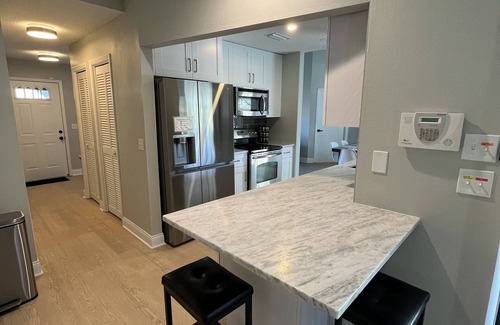 A great family home perfect for a fun and relaxing vacation in Englewood, FL! This comfortable, and very recently remodeled home is just a quick 15 minute drive away from the Manasota Key beach with plenty of fun restaurants, bars, and entertainment. The home is equipped with all necessary appliances and house hold items to make your stay feel like home. The outdoor space is perfect for fun nights with the grill, a screened in outdoor pool, relaxing sitting area, and tiki bar! Your stay can be filled with adventure by the beach or a relaxing at-home stay with the pool, free WIFI, TV, and board games. All necessary stores are nearby. We hope you have a great stay and enjoy the beautiful Florida sun!