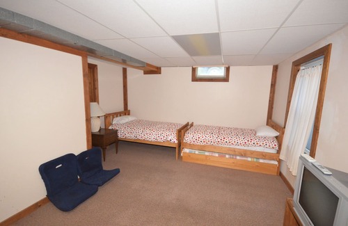 Bedroom 1: queen bed || Bedroom 2: queen bed || Bedroom 3: two twin beds || Basement family room: two twin beds and trundle (three twins) || Living room: queen sofa bed