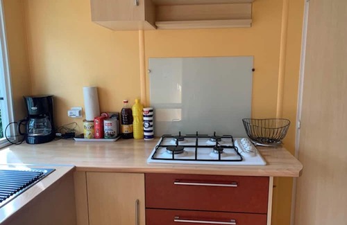 Enjoy a private terrace equipped with sun loungers and outdoor furniture, ideal for al fresco dining. The shared pool is open from January 1st to December 31st, providing a year-round relaxation space. The campsite also offers a large water park with slides, a lake, a petanque ground, and a barbecue area for convivial moments.