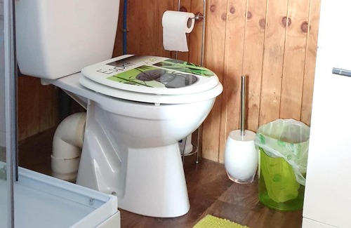 The chalet has 2 comfortable bedrooms, 1 including a double bed and 1 including 2 single beds. The bathroom is fitted with a shower and a toilet.