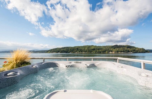 This 2400 sqft. three-bedroom home is built directly on the beach and displays stunning views of Hood Canal and the Olympics through floor to ceiling glass. The home is spacious, comfortable and resort-like with its many amenities such as a private hot tub, private infrared sauna, gas fireplace, outdoor gas firepit, and comfortable furniture.