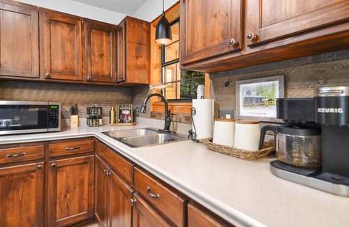 The kitchen features everything you need to feel at home, including a Keurig duo coffee maker. Relax with the peacefulness of nature while enjoying a home cooked meal or delicious take out in the large dining area. The breakfast area offers a three seat table with built-in charging port for all your devices.