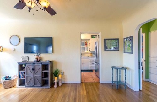 Enjoy secure parking in a spacious 90-ft private driveway (fits up to three cars), cozy beds, an inviting outdoor kiva fire pit, and a relaxing hot tub. Immerse yourself in the neighborhood’s vibrancy, with restaurants, bars, shopping, and family-friendly entertainment just 100 yards away. A short drive will take you to UNM, sports arenas, the zoo, hospitals, and Old Town.