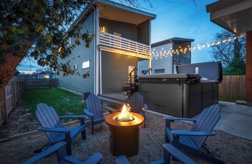 Relax and unwind in this charming backyard oasis while enjoying the best of both worlds in the swimspa - soak like a hot tub or swim a bit like a pool. Enjoy the fire, grill or simply soak in the peaceful surroundings of beautifully illuminated string lights.