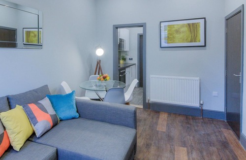 Houghton is a modern one bedroom apartment located on the first floor. Newly refurbished in January 2018, this apartment has a modern and stylish open plan kitchen/lounge, separate bedroom and bathroom. Kitchen comes fully equipped with fridge/freezer, cooker, oven, microwave, washing machine and all necessary kitchen utensils. Apartment also comes with air conditioning unit in the living area!This apartment can easily accommodate 4, great for families.