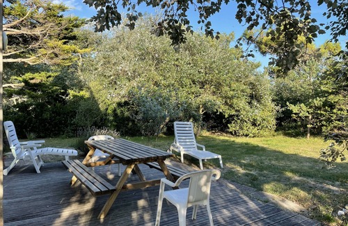 The house is in a large closed plot of 1500m2 wild and wooded, out of sight and from the wind behind the dune and in front of the sailing school.