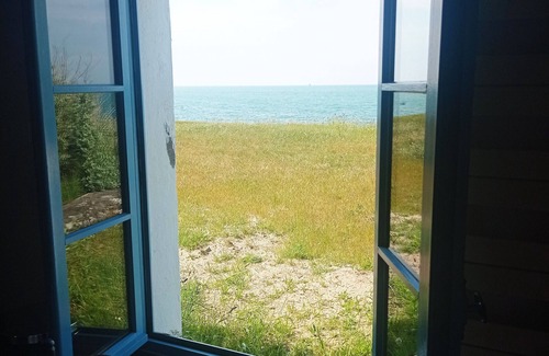 Detached country-style villa with sea views from all rooms - Comfortable - Approximately 5,000 m² of unfenced seafront land facing the beach with a significant drop (stones between the land and the beach) - Approximately 120 m² - Sleeps 6, including a living room overlooking the sea with a sitting area and fireplace, a fitted and equipped kitchen overlooking the sea, a bedroom overlooking the sea with a 160 cm bed, a bedroom overlooking the sea with a 160 cm bed, new summer 2020 (end of the hallway), and a mezzanine with sea views including a 140 cm bed, 2 shower rooms, 2 toilets, one of which is separate. Washing machine, dishwasher, TV, oven, freezer, covered patio, barbecue - Parking on the property - Pets not allowed - End-of-stay cleaning included.