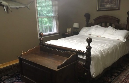Enjoy the private pool (seasonal) while staying at our 5 bedroom 4.5 bath. Large open kitchen, dining and family rooms. The yard is fenced in with a locked gate with woods surrounding the entire property. We are located 1.5 miles from the Pinnacle with shopping, restaurants and the theater. Located near Holston Mountain, Steele Creek Park, with hiking and biking. Bristol Regional Hospital is located 1 1/2 miles from the home. Pool table, tennis court, volleyball court, basketball and horseshoes. Patio/pool area with television. Well equipped kitchen with a bar and granite counter tops. The Bristol Motor Speedway is located 6.4 miles from the home. Gas fireplace in the main living area. The website is only monitored on Monday, Tuesday and Thursday, if you have questions on any other day please call 423-340-0344.