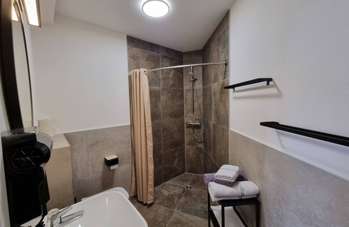 Our five individual double rooms are modern and furnished with great attention to detail and have barrier-free showers, satellite TV, WiFi, comfortable mattresses, cozy bed linen and cozy bathroom textiles. They give you space to find peace and to be completely for yourself.
