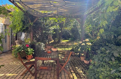 Indigo-colored kitchen, delightful pergola in the large garden for exclusive use 400 square meters.